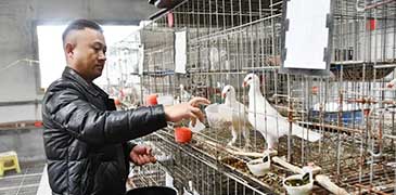 近日,走進(jìn)山東省菏澤市鄄城縣臨濮鎮(zhèn)小屯村天一家禽養(yǎng)殖場(chǎng),負(fù)責(zé)人王俊生正給鴿子添喂飼料。養(yǎng)殖棚內(nèi),一只只羽毛色澤艷麗的鴿子精神抖擻,爭先恐后地啄食著鴿糧,“咕咕&rd