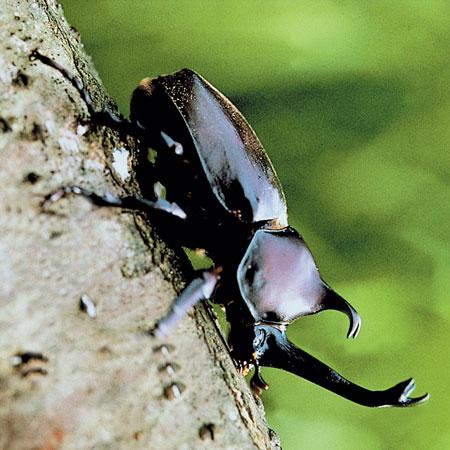 光線照射干擾條件下,獨角仙外殼會形成綠色,當水滲透外殼的多孔層會摧毀光線干擾狀況,導(dǎo)致外殼變成黑色。研究人員在實驗室中采用干燥的獨角仙外殼標本進行測試。獨角仙通常生存于哥倫比亞、委內(nèi)瑞拉、秘魯、厄瓜多爾、玻利維亞和巴西的雨林環(huán)境中,目前這種神秘的昆蟲仍保守著許多不解之謎。比如:雖然將死亡獨角仙的外殼樣本干燥后可顯示隨空氣濕度變化的變色狀況,但是活著的獨角仙不一定會出現(xiàn)相同的反應(yīng)。