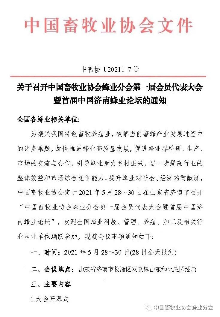 為振興我國特色畜牧養(yǎng)殖業(yè),破解當(dāng)前蜜蜂產(chǎn)業(yè)發(fā)展過程中的諸多難題,加快推進(jìn)蜂業(yè)高質(zhì)量發(fā)展,促進(jìn)蜂業(yè)界科研、生產(chǎn)、市場的交流與合作,引導(dǎo)蜂業(yè)助力鄉(xiāng)村振興,進(jìn)一步提高行業(yè)的整體效益和市場綜合競爭能力,提升蜂業(yè)對社會、經(jīng)濟(jì)的貢獻(xiàn)度,中國畜牧業(yè)協(xié)會定于2021年5月28~30日在山東省濟(jì)南市長清區(qū)雙泉鎮(zhèn)山東和生莊園酒召開“中國畜牧業(yè)協(xié)會蜂業(yè)分會第一屆會員代表大會暨首屆中國濟(jì)南蜂業(yè)論壇”,歡迎全國蜂業(yè)科教、管理、養(yǎng)殖、加工及相關(guān)行業(yè)從業(yè)單位踴躍參加。
