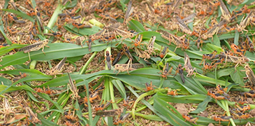 近日,在河北省滄州市海興縣趙毛陶鎮(zhèn)北四村的螞蚱養(yǎng)殖大棚內(nèi),養(yǎng)殖戶崔向龍正在給螞蚱喂食新鮮的牧草。只見手指般粗壯的螞蚱在大棚里蹦跳翻飛,撲騰聲此起彼伏,迎來了又一個(gè)豐