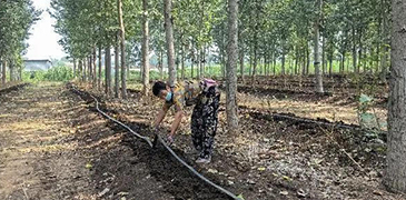 工人在壟上鋪設(shè)水管,確保蚯蚓養(yǎng)殖有足夠的水源供應(yīng)。焦韓冰攝 近日,走進(jìn)河北省邱縣香城固鎮(zhèn)西臨河村,村外30多畝楊樹林下的景象格外引人注目:一壟壟黑褐色的“田壟&rdqu
