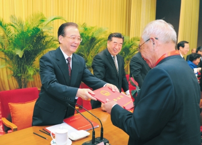 溫家寶為先進單位和先進個人代表頒獎 新華社記者 謝環(huán)馳 攝