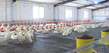 近日,天剛蒙蒙亮,河南省駐馬店市新蔡縣今是街道余莊村的田地里已然熱鬧非凡?! ≡谌f潤家庭農(nóng)場的散養(yǎng)基地,上萬只白鵝引頸高歌,健碩的獅頭鵝氣宇軒昂,皖浦大白鵝踱著方步,它