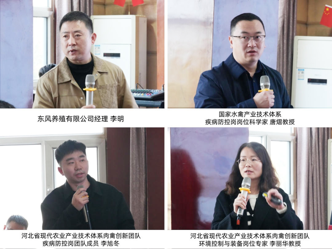 本次活動邀請中國農(nóng)科院、國家水禽產(chǎn)業(yè)技術(shù)體系疾病防控崗位科學(xué)家唐熠教授,國家水禽產(chǎn)業(yè)技術(shù)體系滄州試驗站站長穆春雨,河北省現(xiàn)代農(nóng)業(yè)產(chǎn)業(yè)技術(shù)體系肉禽創(chuàng)新團隊疾病防控崗位專家徐彤、營養(yǎng)與飼料崗位專家馬騰壑、環(huán)境控制與裝備崗位專家李麗華、衡滄綜合試驗推廣站站長李劍、獸藥殘留與減抗控制綜合試驗推廣站站長李研東,以及東風(fēng)養(yǎng)殖有限公司李明、王健等行業(yè)專家、企業(yè)代表、養(yǎng)殖場戶技術(shù)人員等80余人共同參與?;顒佑珊颖笔‖F(xiàn)代農(nóng)業(yè)產(chǎn)業(yè)技術(shù)體系肉禽創(chuàng)新團隊衡滄綜合試驗推廣站站長李劍主持。