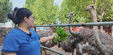 養(yǎng)殖戶王秀瑞給鴕鳥(niǎo)喂青菜。劉唯清攝 近日,在河北省灤南縣扒齒港鎮(zhèn)后營(yíng)村的一處鴕鳥(niǎo)養(yǎng)殖場(chǎng)內(nèi),30多只體高近兩米、平均體重超過(guò)100公斤的鴕鳥(niǎo)正悠閑踱步。養(yǎng)殖戶王秀瑞